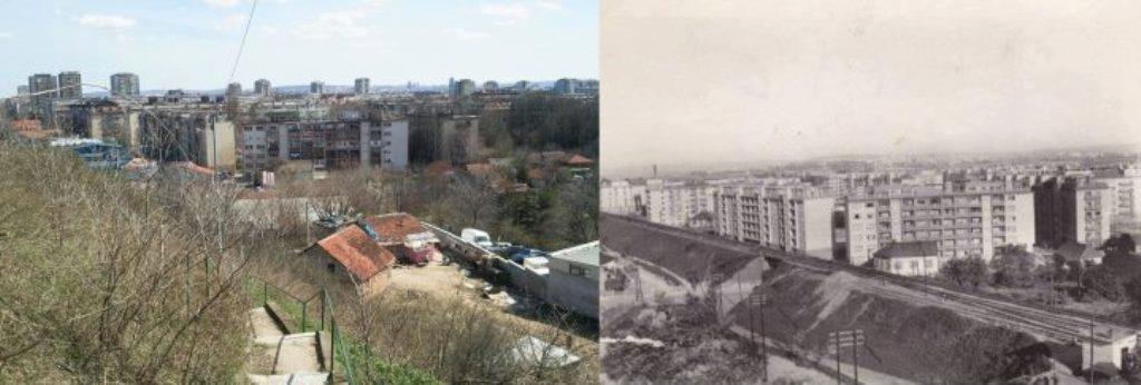 Када воз прође наш солитер, лепо се види "пољанче" на коме смо играли фудбал, али и Истарска улица (десно од пољане) у којој се налазила чесмица која је крива за све наше упале грла - само смо били жедни, а вода хладна 😀😀😀.
